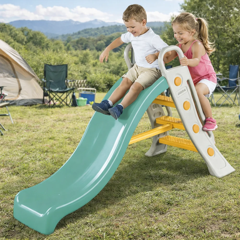- Jucării de exterior: trotinete, biciclete pentru copii, tobogane, leagăne, trambuline, piscine gonflabile, corturi de joacă, nisip kinetic.
