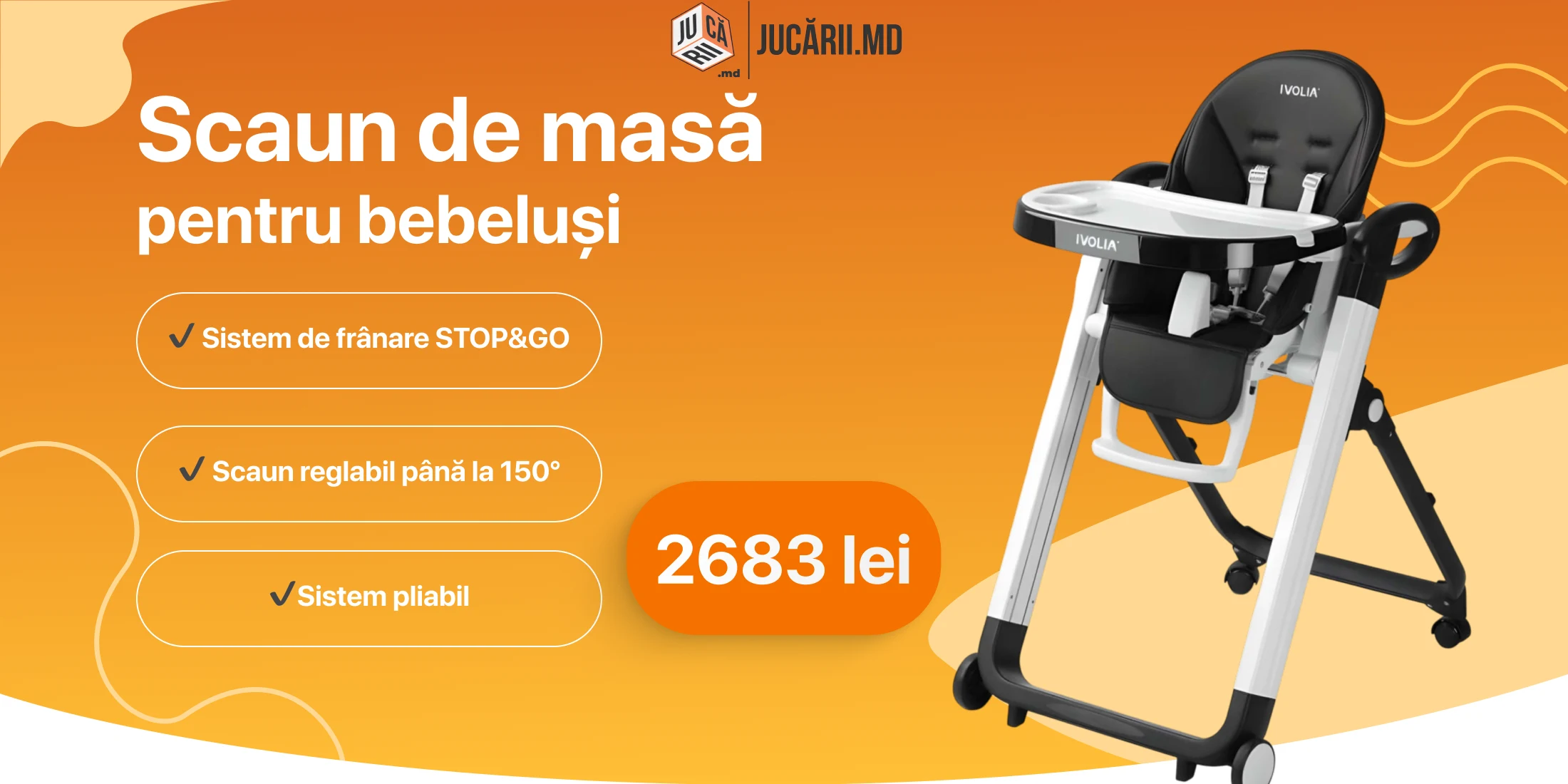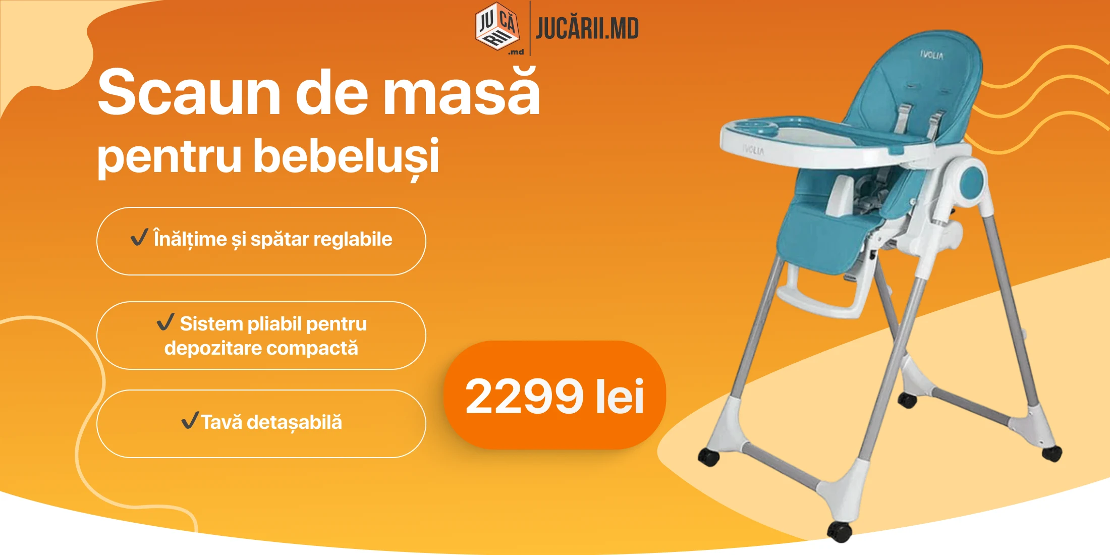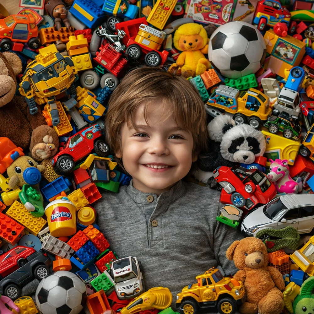 - Jucării pentru copii mici (1-3 ani): jucării educative, cuburi de construit, jucării de împins și tras, triciclete, jucării din lemn, sortatoare de forme, puzzle-uri simple și jocuri senzoriale.