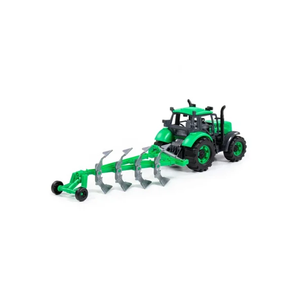 Tractor cu inerție și plug Progress, verde (în cutie), Polesie (91307)