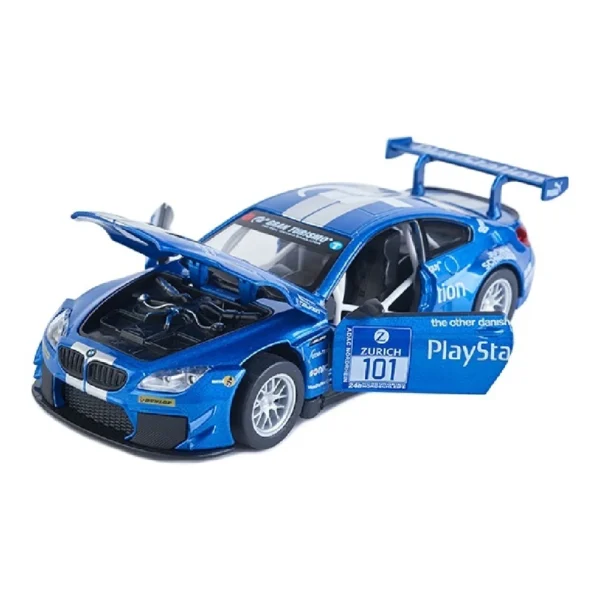 (68255A/1) Mașină din metal 1:24 BMW M6 GT3 albastru cu sunete si lumini (se deschid usile)
