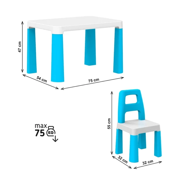 Masă pentru copii cu 2 scaune, set mobilier albastru (0471)