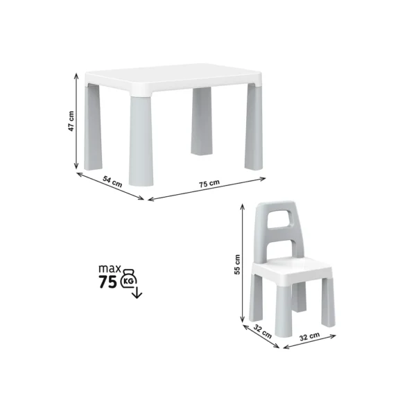 Masă pentru copii cu 2 scaune, set mobilier gri (0150)