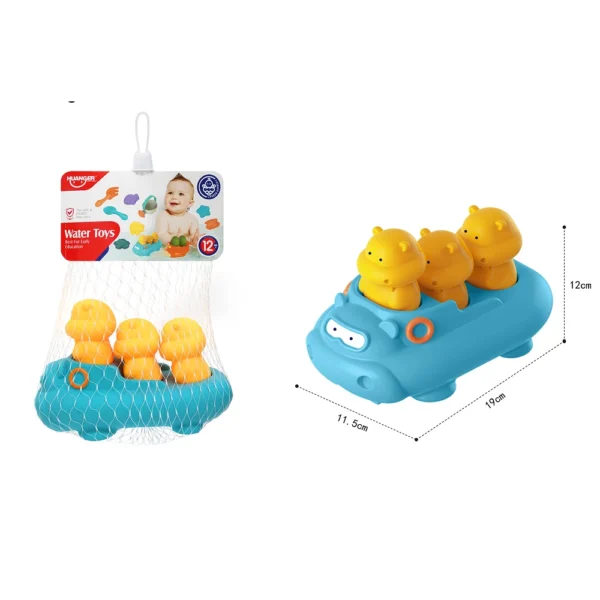 Set de jucării pentru baie cu animale și bărci, cu coș de depozitare, Huanger HE0271 (19018)