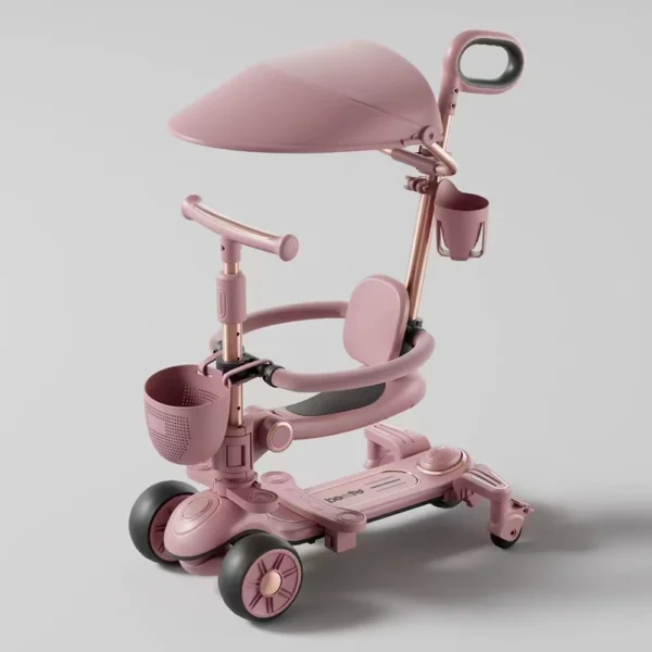 Trotinetă pentru copii 6 în 1 cu scaun, mâner parental, roți luminoase și muzică, bej, RTM Scooter (64471)