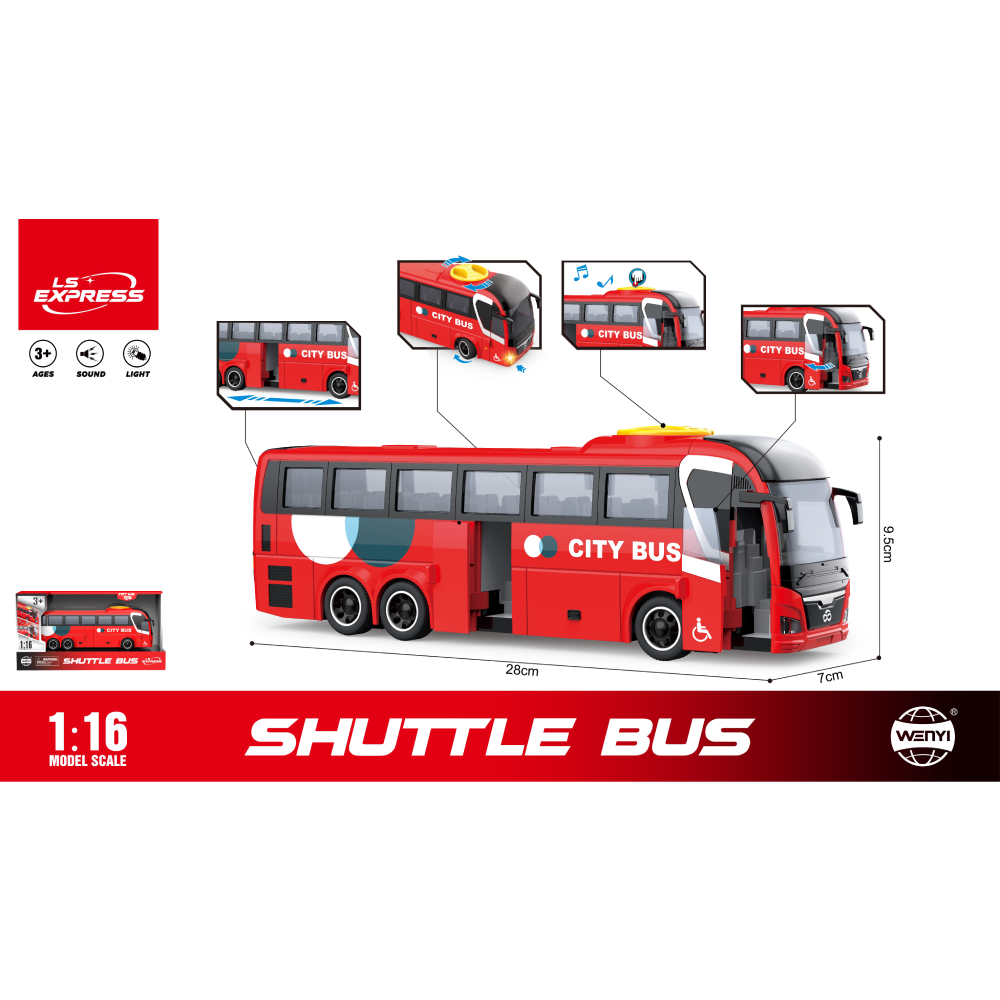 (11076) 1:16 Autobuz cu inertie (lumini /sunete) WY1107B
