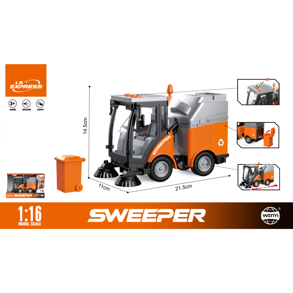 (16800) 1:16 Mașină de curățat strada cu inertie (lumini /sunete) WY680A