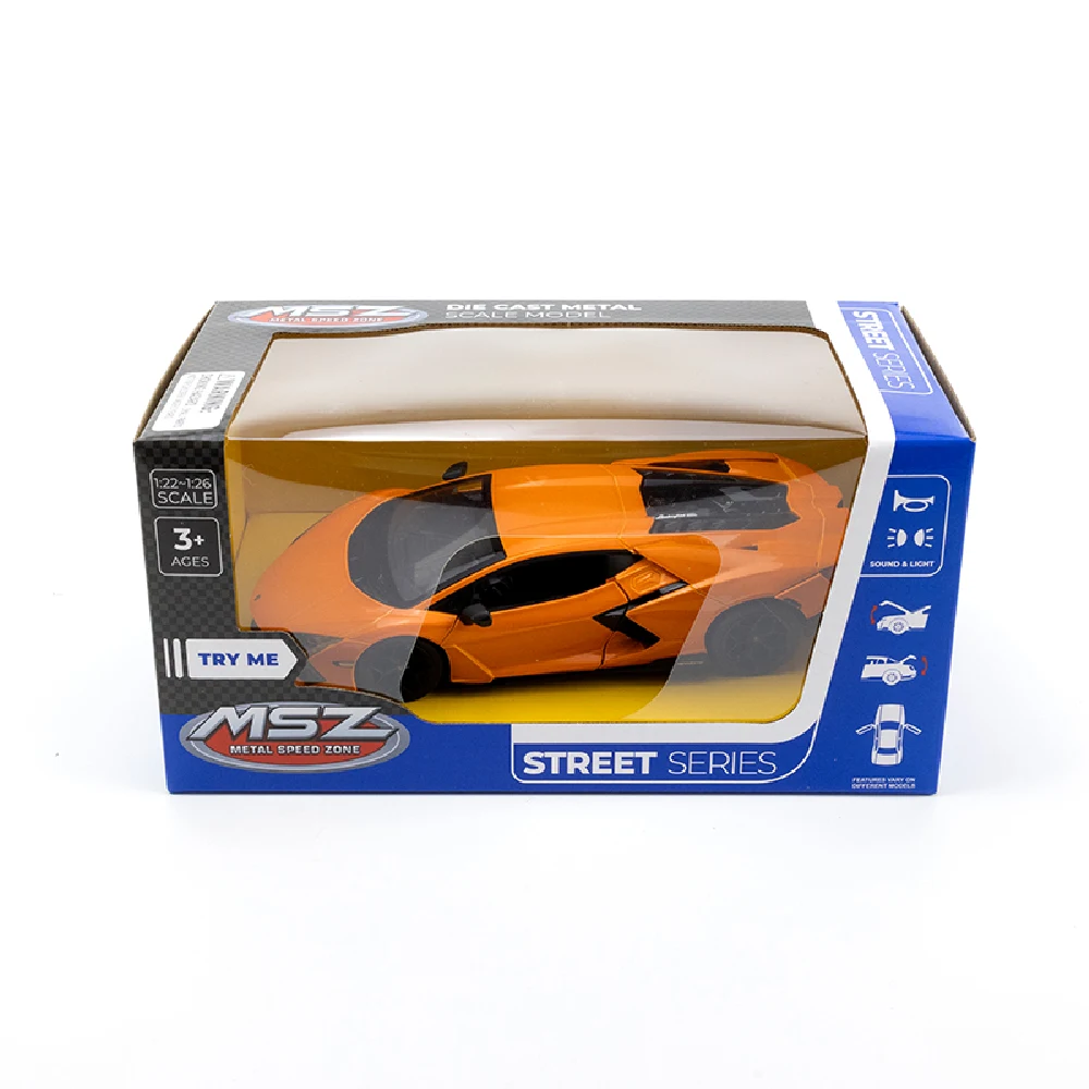 Mașină din metal 1:24 Lamborghini Revuelto oranj cu sunete si lumini (se deschid usile) (68200A/1)