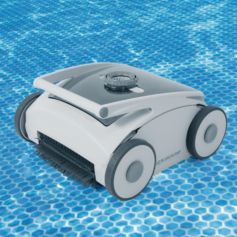 Aspirator robot automat pentru piscină ZX500R Auto Cleaner, conceput pentru curățarea eficientă a fundului și pereților piscinei fără cabluri și fără conectare la sistemul de filtrare. Echipat cu trei motoare și algoritm inteligent de deplasare, asigură aspirare performantă și întreținere simplă, pentru o piscină curată cu efort minim.