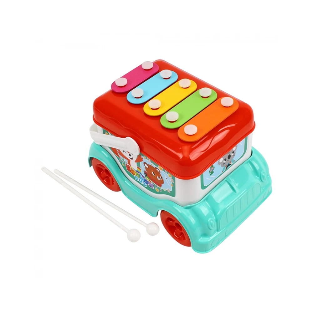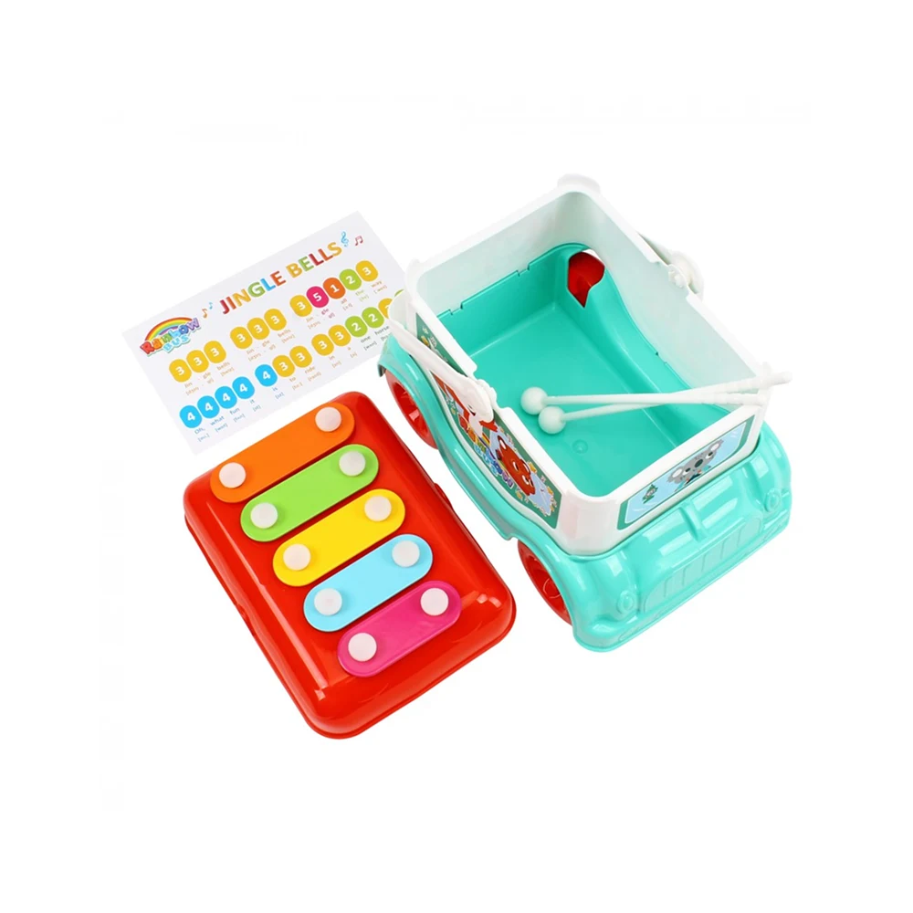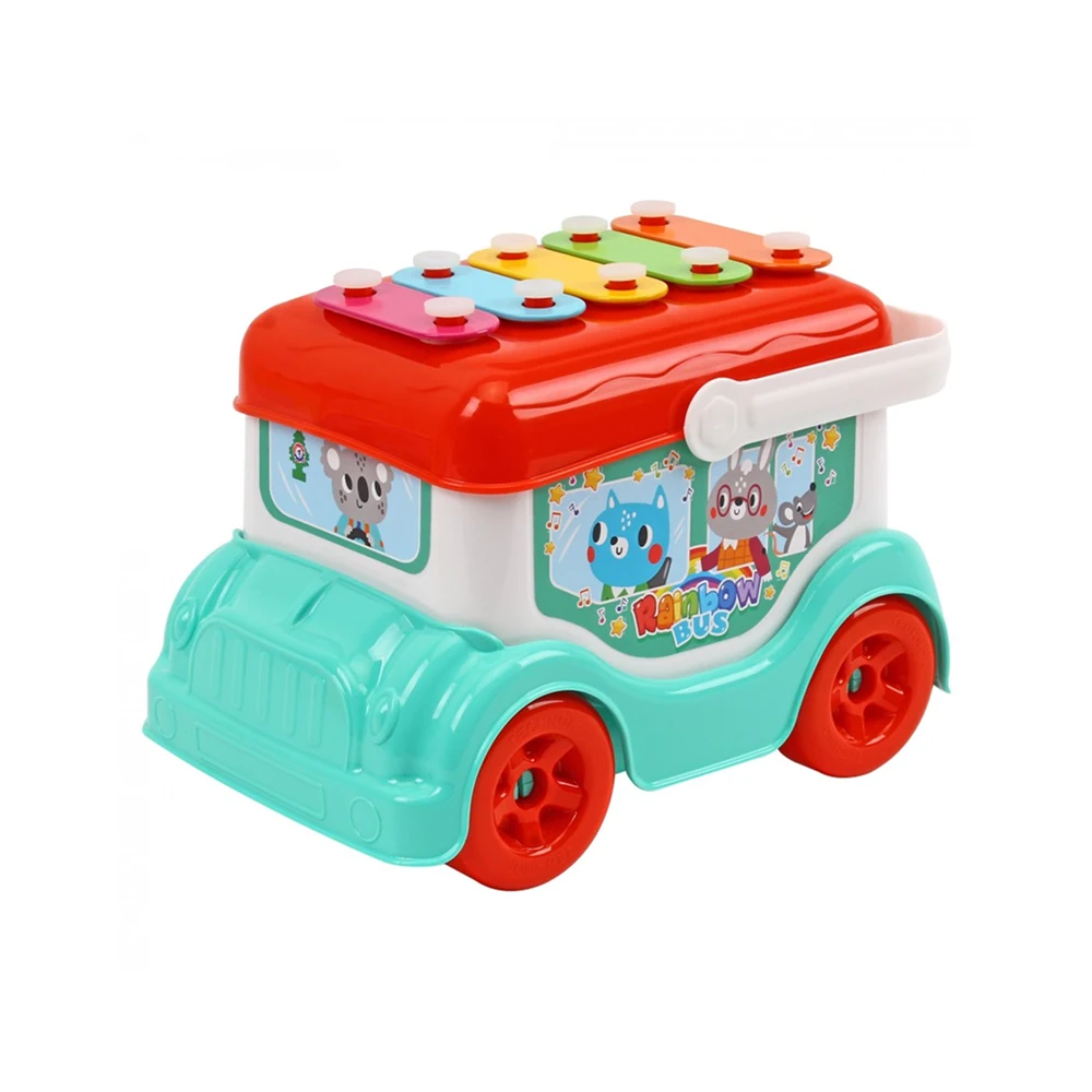 Autobuz muzical cu xilofon integrat, ideal pentru joacă educativă și dezvoltarea simțului muzical la copiii mici.