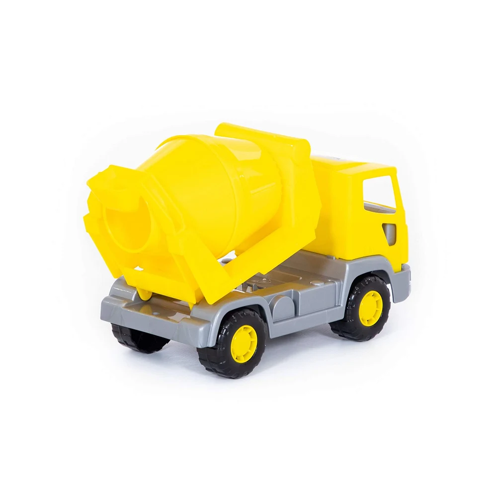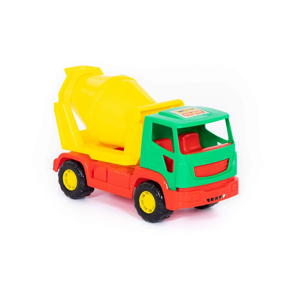Autospeciala betonieră Agat este concepută special pentru micii pasionați de utilaje de construcții. Jucăria reproduce forma unui camion betonieră real, fiind dotată cu tambur rotativ care stimulează jocul de rol și imaginația copilului. Construcția solidă și roțile rezistente permit utilizarea atât în interior, cât și în exterior, pe nisip sau alte suprafețe.