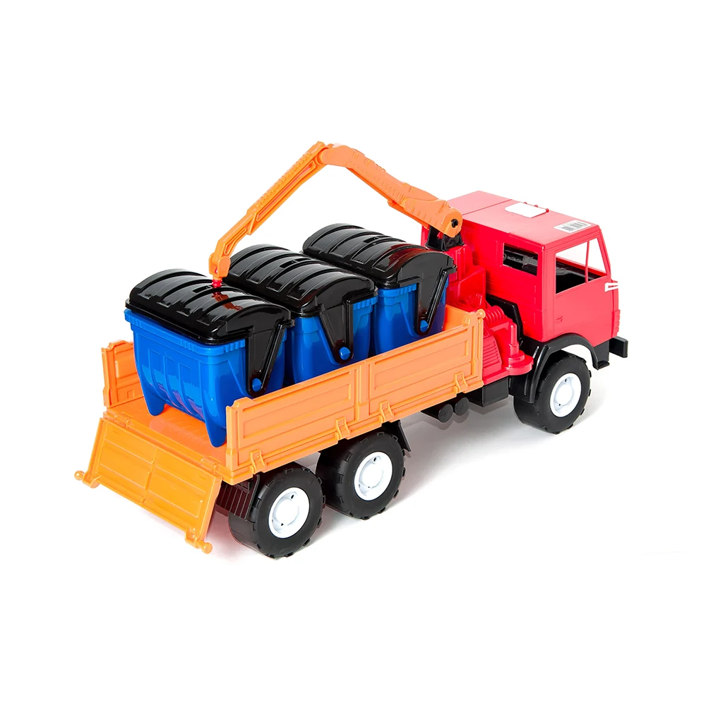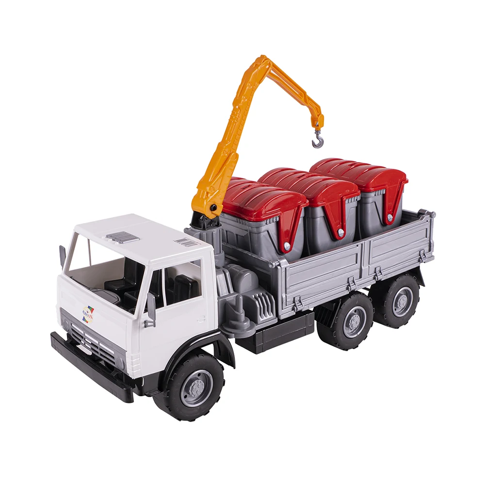 Autospecială utilitară cu manipulator funcțional, recomandată copiilor de la 3+ ani. Realizată din plastic rezistent și non-toxic. Dimensiuni: 400 × 200 × 240 mm.