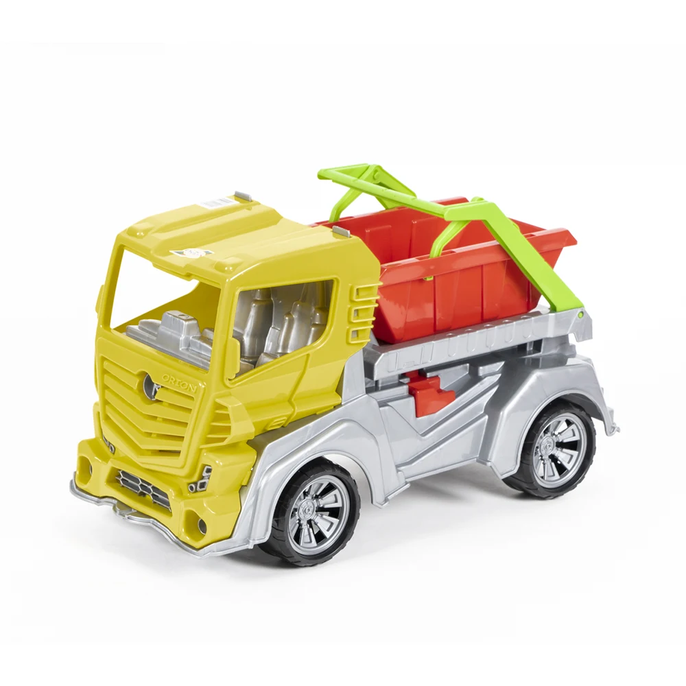 Autospecială utilitară cu container, potrivită pentru copiii de la 3+ ani, realizată din plastic rezistent, cu dimensiunile 445 × 200 × 245 mm. Ideală pentru joaca de rol și activități creative.