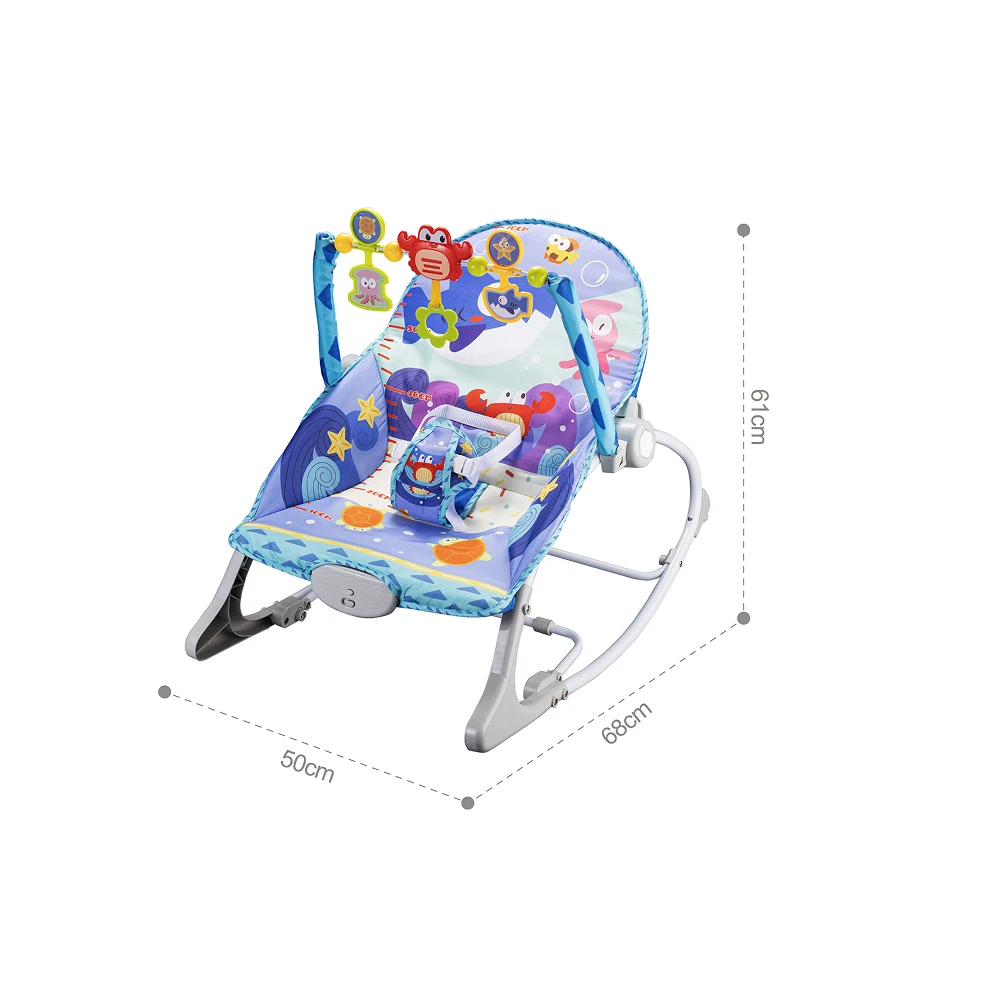 Balansoar confortabil pentru bebeluși, cu design vesel cu animăluțe marine și jucării suspendate, ideal pentru relaxare, joacă și stimularea senzorială încă din primele luni.