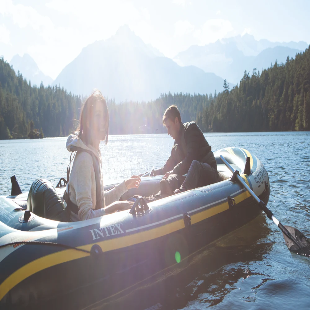 Barcă gonflabilă spațioasă și stabilă, ideală pentru lacuri și ape liniștite, concepută pentru până la 3 persoane, cu set complet pentru utilizare imediată.