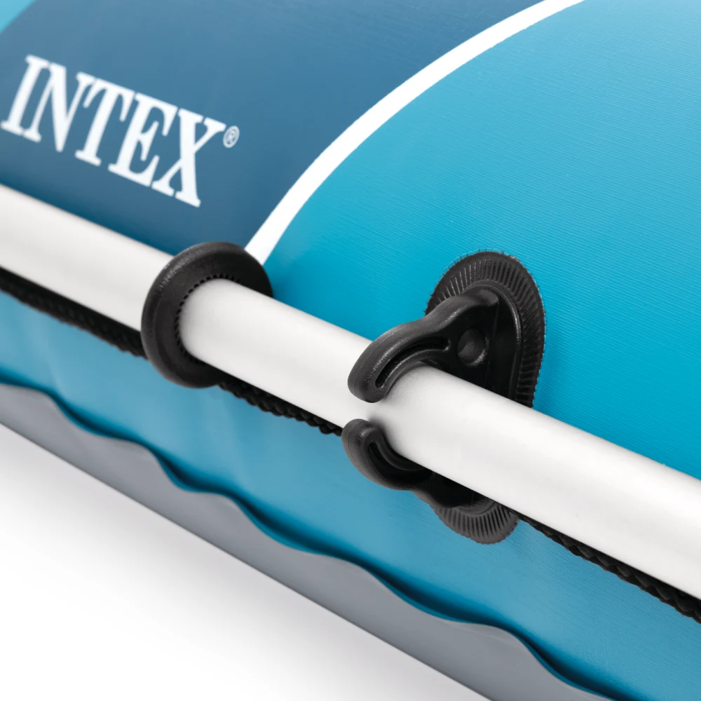 Pentru manevrare ușoară, barca este prevăzută cu mânere de prindere, frânghie de siguranță și suporturi laterale pentru vâsle. Pe laterale sunt integrate suporturi pentru undițe, utile în timpul pescuitului. În partea din spate există conectori pentru montarea unui motor (neinclus). Setul include vâsle și pompă, pentru utilizare imediată. Capacitatea maximă de încărcare este de 500 kg, fiind potrivită pentru activități recreative în familie sau cu prietenii.