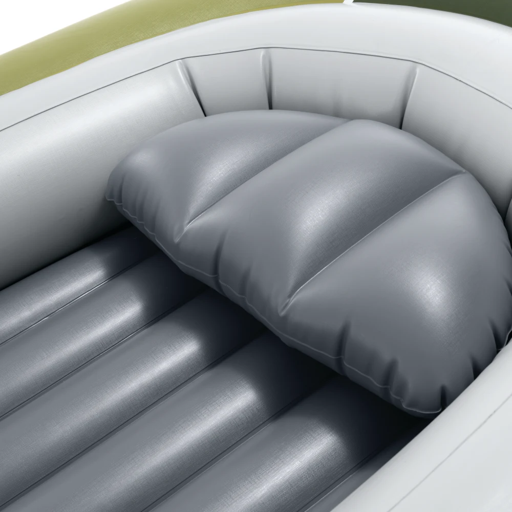 Barcă gonflabilă spațioasă și stabilă, ideală pentru pescuit și plimbări recreative pe ape liniștite. Pachet complet cu vâsle și pompă, conceput pentru utilizare imediată și confort pentru până la patru persoane.