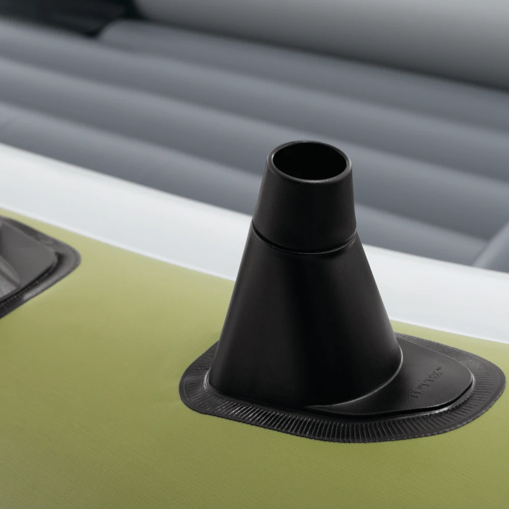 Pe laterale sunt integrate suporturi și încuietori pentru vâsle, iar la interior sunt prevăzute suporturi pentru undițe, utile pentru pescuit. În partea din spate există conexiuni pentru montarea unui motor (suportul nu este inclus). Setul este completat de două vâsle și o pompă manuală, astfel încât barca poate fi utilizată imediat. Greutatea maximă suportată este de 480 kg.