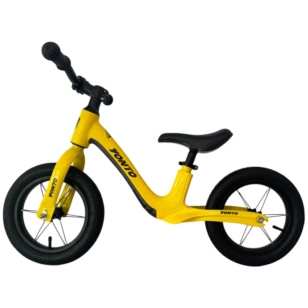 Bicicletă fără pedale 12 inch, cu șa reglabilă și lumini LED. Design stabil și ușor, ideal pentru dezvoltarea coordonării și echilibrului.