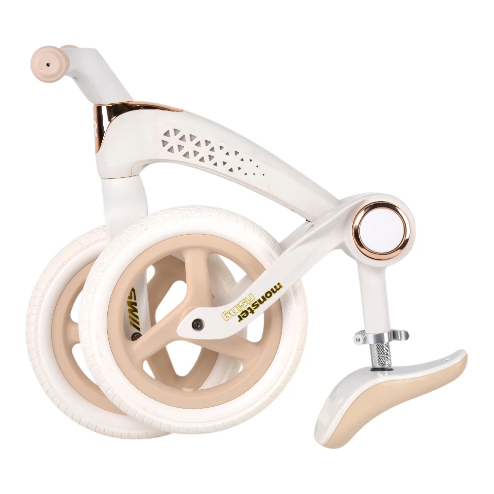 Echipată cu roți de 12 inch, bicicleta asigură o deplasare lină și confortabilă, adaptată diferitelor tipuri de suprafețe. Cadrul din nylon rezistent oferă durabilitate și o greutate redusă, facilitând manevrarea ușoară.