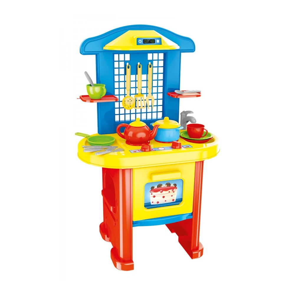 Bucătăria în set cu accesorii este concepută special pentru a oferi copiilor o experiență realistă de joc de rol. Designul este compact, dar bine organizat, permițând celor mici să simuleze activități de gătit într-un mod distractiv și educativ.