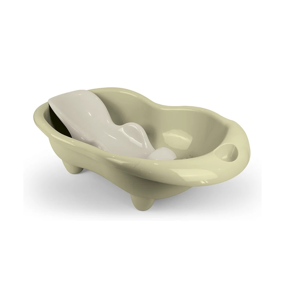 Cadă ergonomică pentru bebeluși, cu șezut integrat, concepută pentru o baie sigură și confortabilă încă din primele luni de viață.