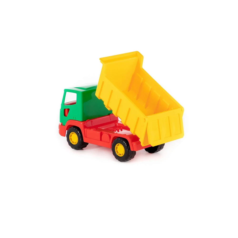 Camionul basculant Agat este o jucărie rezistentă și ușor de manevrat, ideală pentru jocuri de construcție și transport, atât în interior, cât și în aer liber.