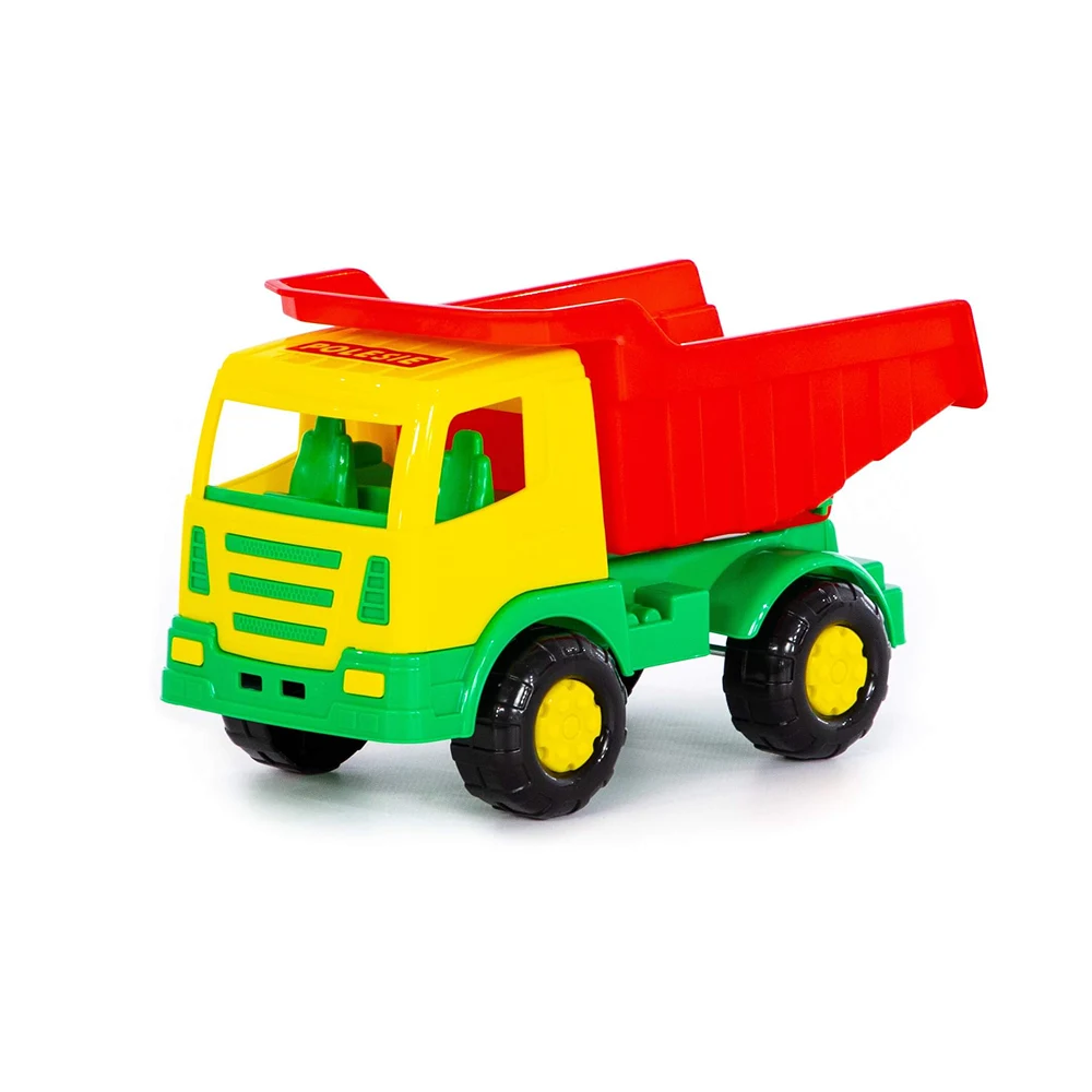Camion basculant colorat, rezistent și ușor de manevrat, ideal pentru jocurile de construcții și transport ale copiilor, atât în interior, cât și afară.
