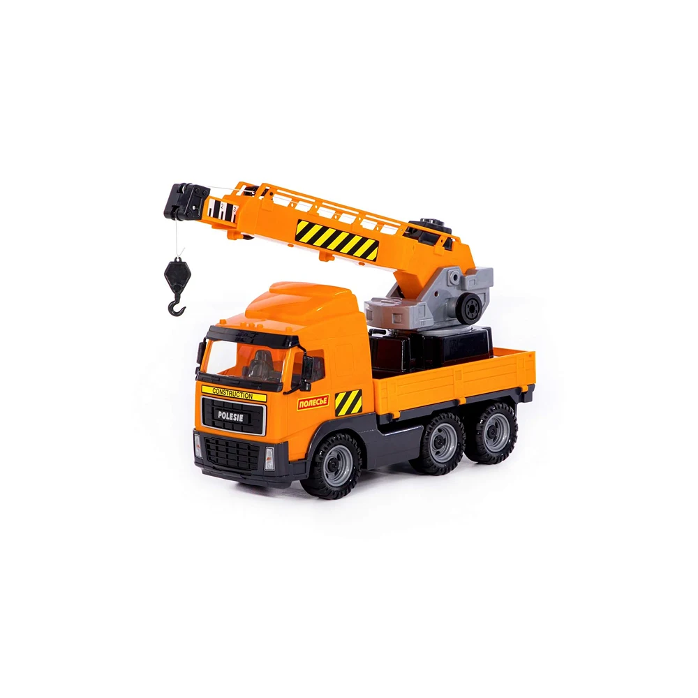 Camion macara cu platformă rotativă, ideal pentru copiii pasionați de utilaje de construcții, oferind jocuri de rol dinamice și realiste atât în interior, cât și în aer liber.