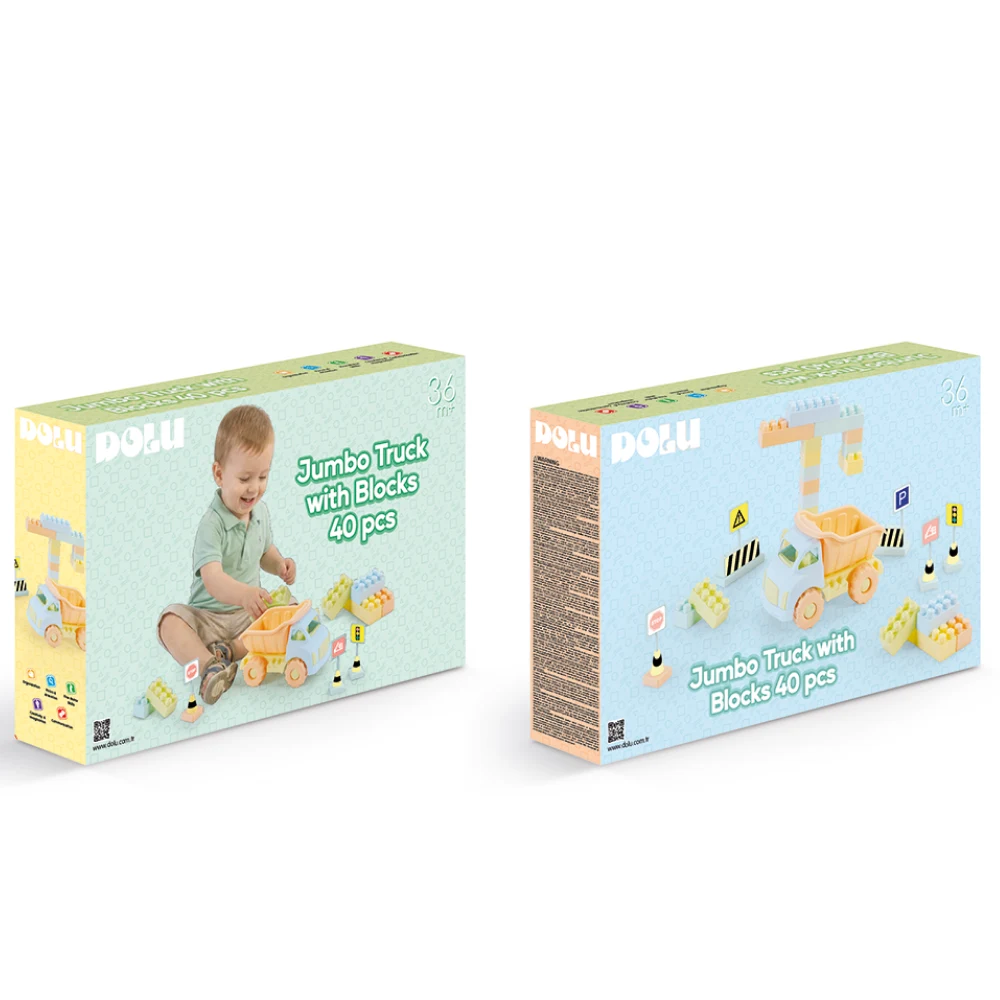 Camion pentru copii cu piese de construcție, conceput pentru joacă activă și creativă. Setul include 40 de piese în diferite forme și culori, care pot fi combinate pentru a construi și explora prin joacă.