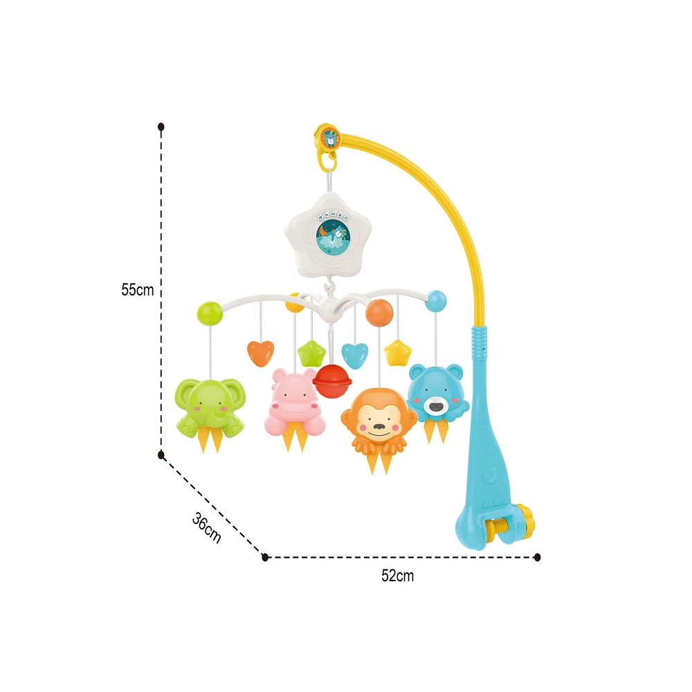 Caruselul muzical pentru pătuț cu lumini și zornăitoare este ideal pentru crearea unui mediu liniștitor și plăcut pentru bebeluși. Figurinele suspendate, prevăzute cu elemente tip zornăitoare, atrag atenția copilului și stimulează percepția vizuală prin culori și forme prietenoase.
