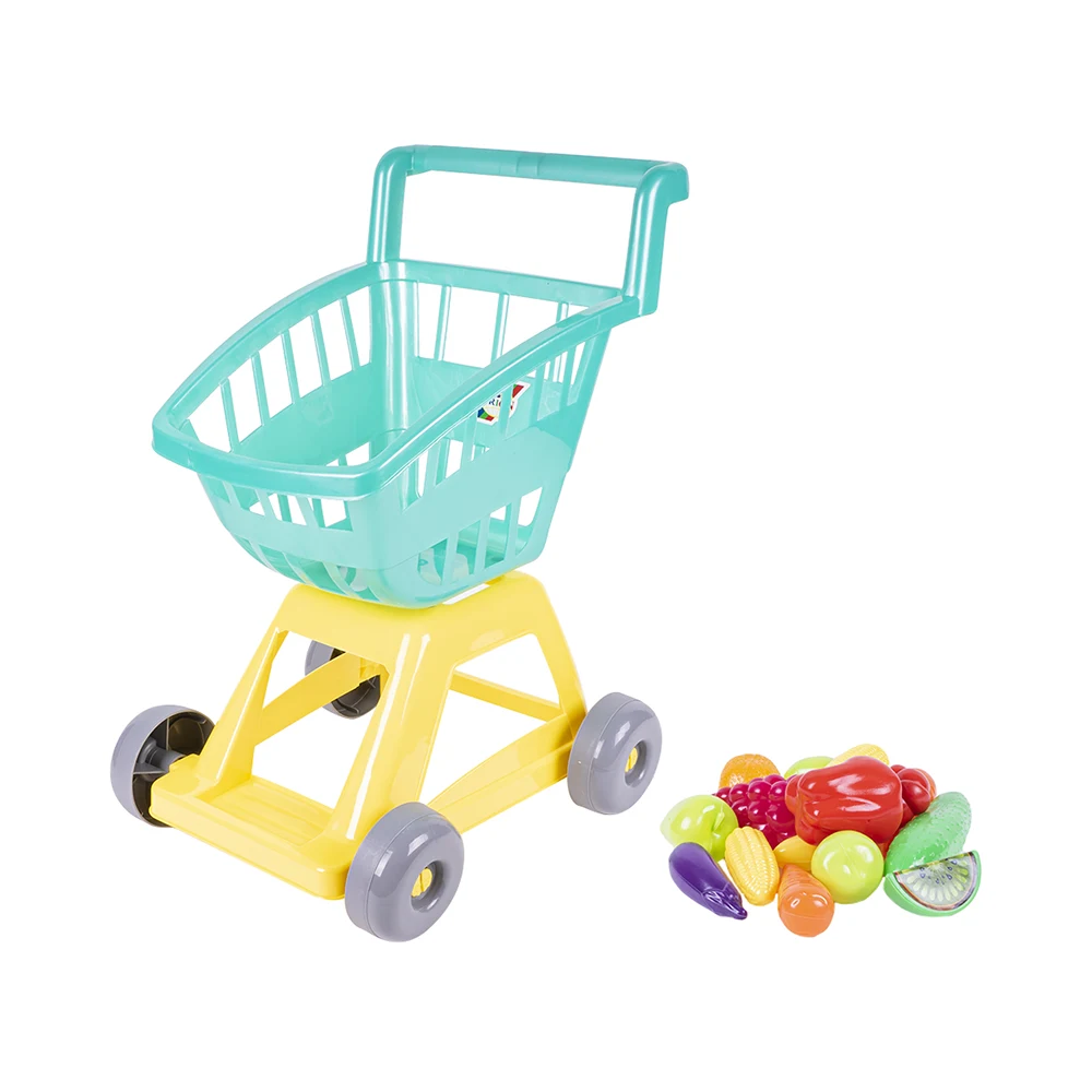 Căruț de supermarket pentru copii, ideal pentru jocuri de rol distractive și educative. Compact, ușor de manevrat și perfect pentru micii cumpărători.