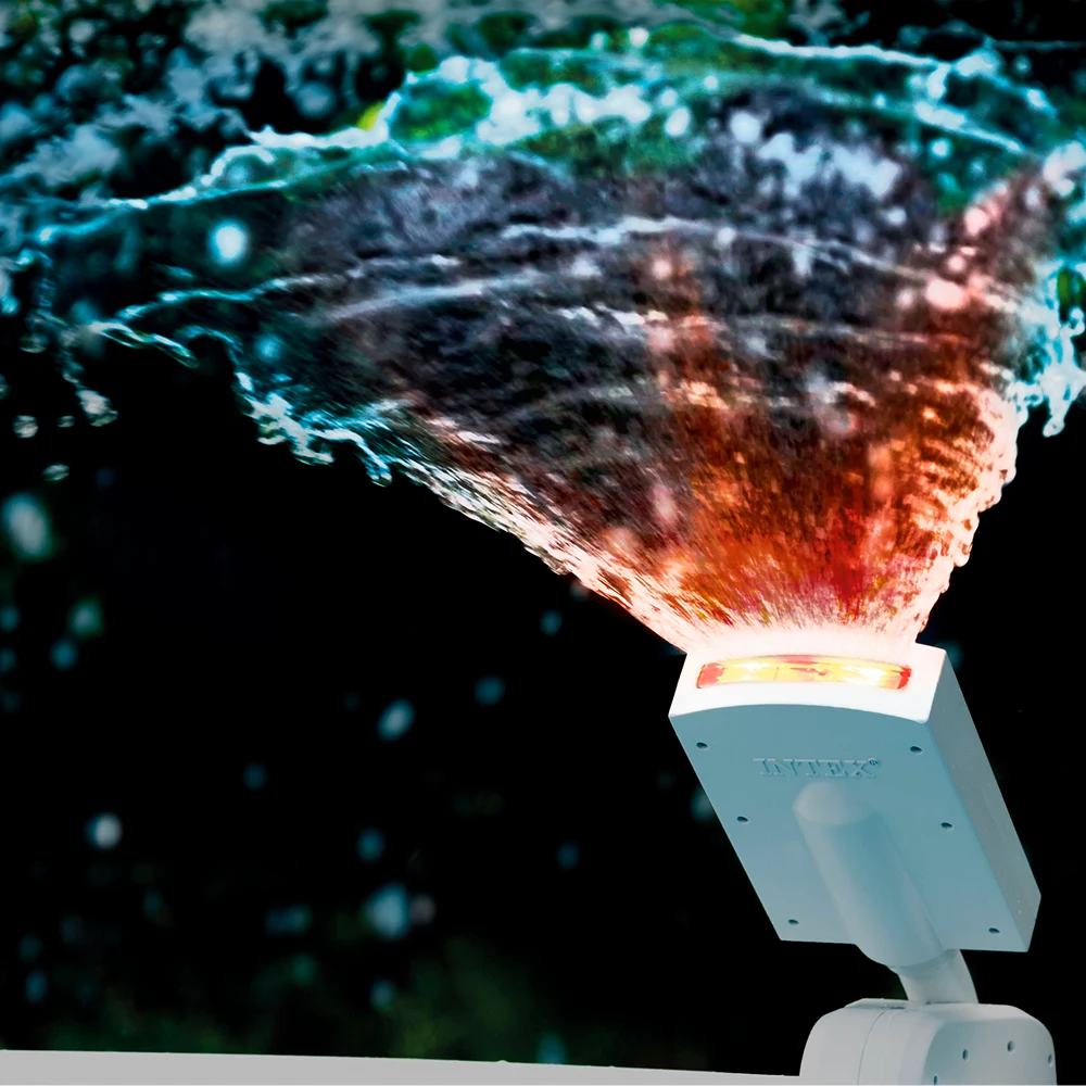 LED-urile multicolore emit lumină în patru culori (alb, roșu, albastru și verde), care se schimbă automat la intervale regulate, creând un efect ambiental plăcut, mai ales seara. Cascada este compatibilă cu piscinele Prism Frame și Ultra XTR Frame, cu excepția modelelor ovale.