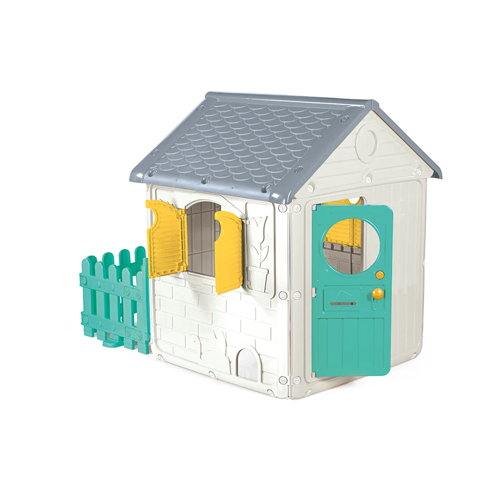 Căsuță de joacă spațioasă pentru copii, cu gard inclus, ideală pentru joacă creativă în aer liber sau în interior. Oferă un spațiu sigur și distractiv pentru jocuri de rol și activități imaginative.