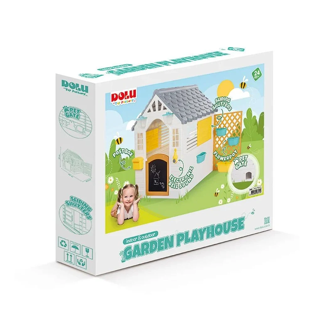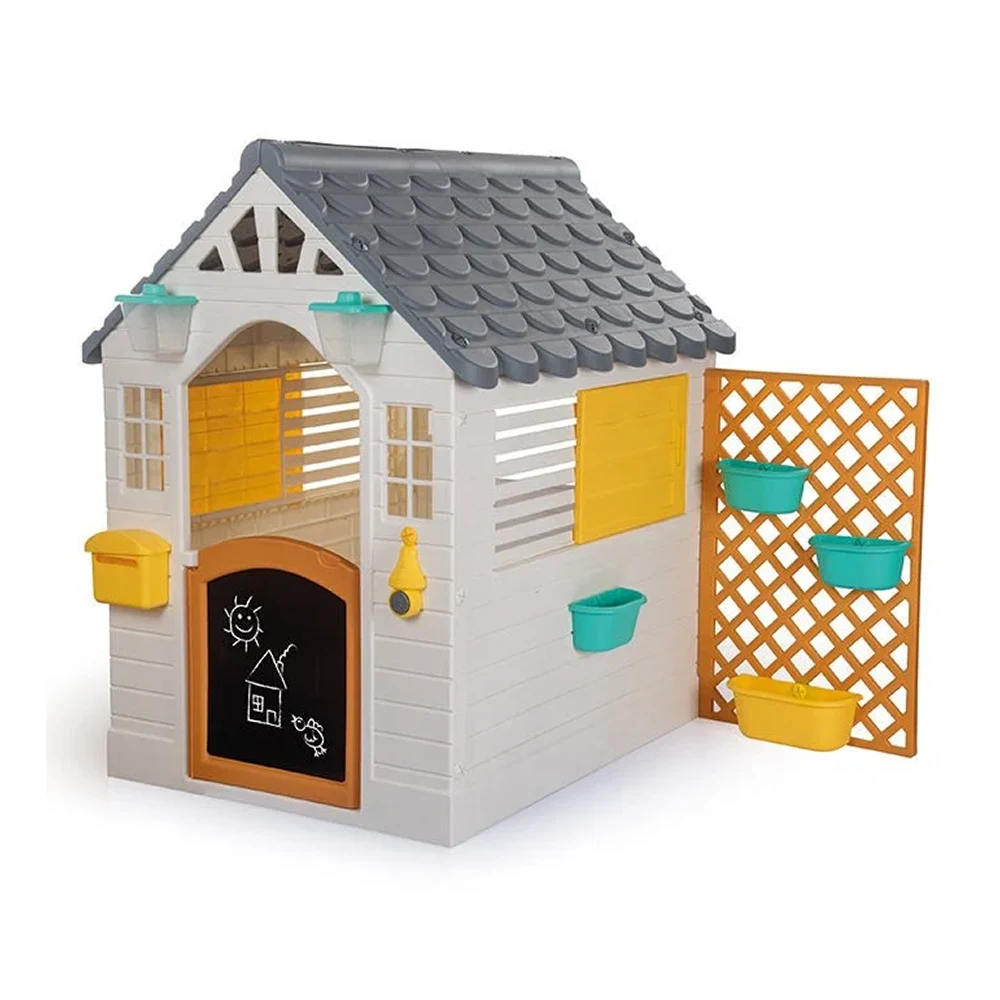 Căsuța este prevăzută cu sonerie electronică, fereastră glisantă și zonă de gard decorativ, oferind o experiență de joacă realistă. Dimensiunile generoase permit joaca mai multor copii simultan, contribuind la dezvoltarea abilităților sociale și a comunicării.