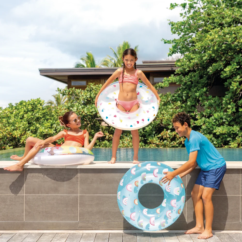 Colacul gonflabil Whimsical Magic este conceput pentru utilizare în piscină sau la mare, fiind potrivit pentru copiii cu vârsta de peste 8 ani. Dimensiunea de 81 cm oferă o susținere confortabilă în apă, iar structura colacului permite o poziție stabilă în timpul utilizării.