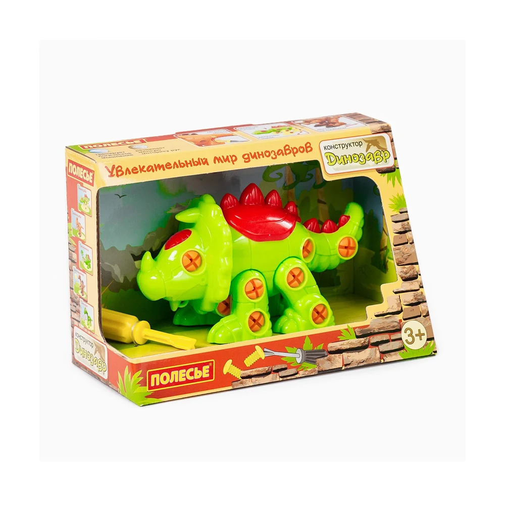 Constructorul dinozaur Triceratops de la Polesie este o jucărie educativă care îmbină joaca de construcție cu pasiunea pentru lumea dinozaurilor. Copilul poate asambla și dezasambla dinozaurul folosind piesele incluse și șurubelnița, dezvoltându-și coordonarea și gândirea logică.