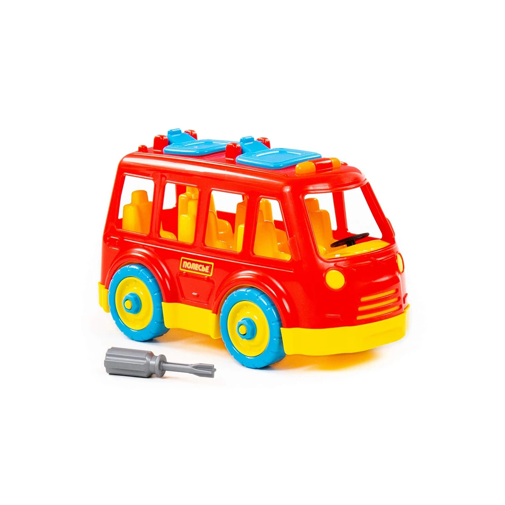 Acest constructor sub formă de autobuz este conceput pentru a stimula creativitatea și îndemânarea copiilor. Setul include piese mari, ușor de manevrat, care se îmbină simplu cu ajutorul șuruburilor și al instrumentului inclus.