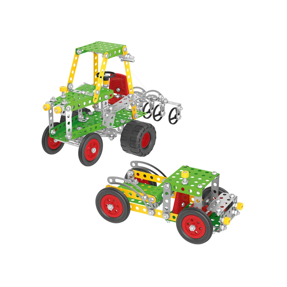 Constructor metalic pentru copii de la 5 ani, cu 253 de piese, destinat asamblării autospecialelor agricole. Joc educativ ce dezvoltă gândirea tehnică și îndemânarea.