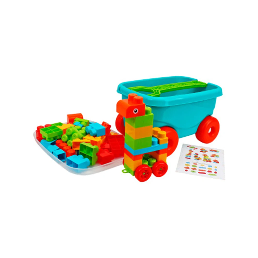 Copiii pot construi diverse forme și structuri, pot transporta piesele în cărucior și le pot depozita cu ușurință după joacă. Acest tip de joc stimulează creativitatea, coordonarea mână-ochi și dezvoltarea motricității grosiere.