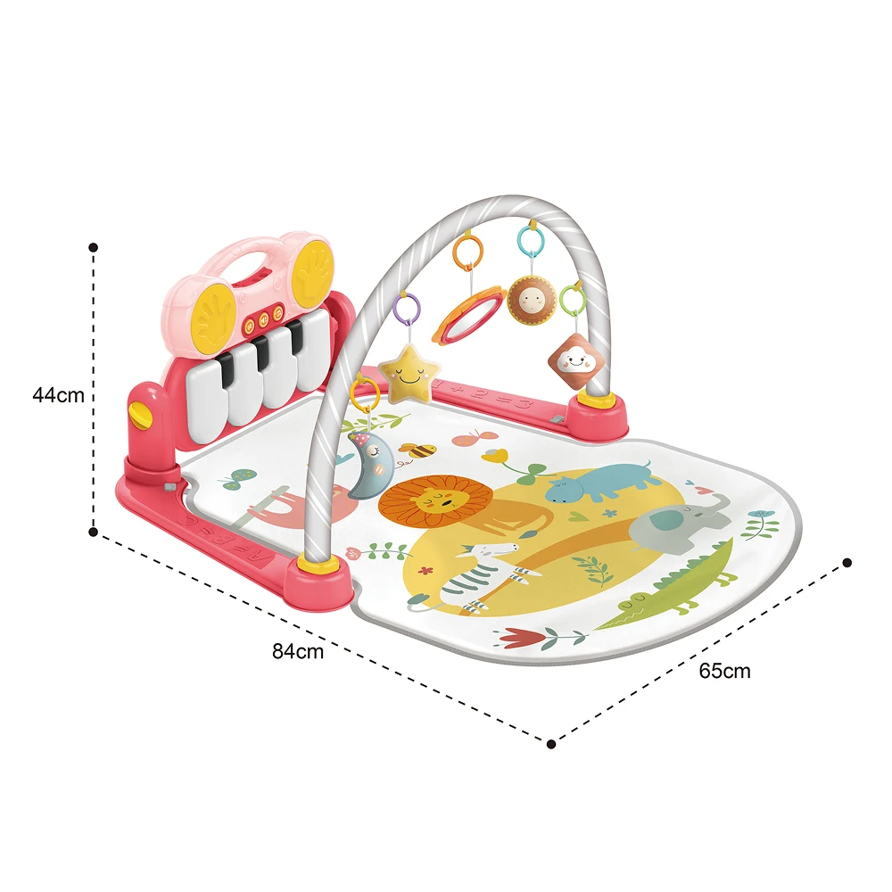 Covorașul de joacă educativ cu pian muzical este un centru complet de activități pentru bebeluși, ideal pentru joaca zilnică în siguranță. Pianul muzical integrat, jucăriile suspendate și elementele interactive stimulează auzul, vederea și coordonarea mână-ochi.