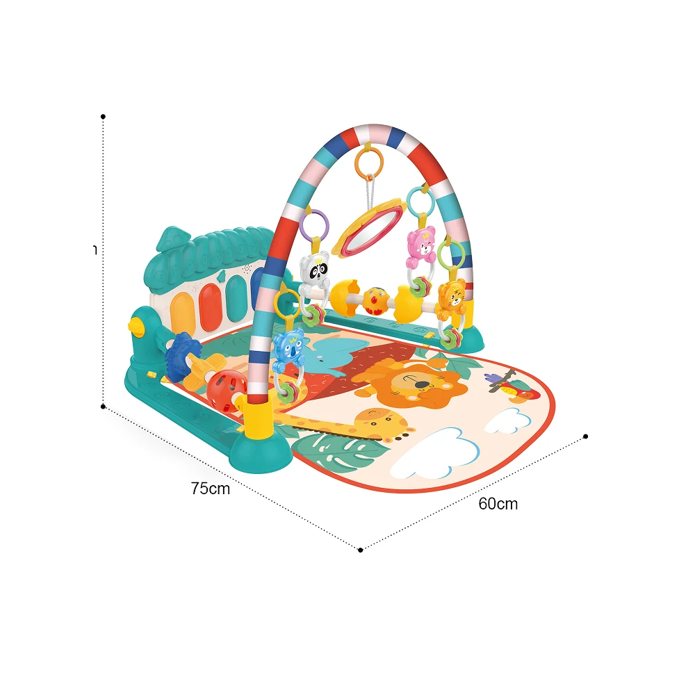 Acest covoraș de joacă educativ este conceput pentru a sprijini dezvoltarea timpurie a bebelușilor prin joacă activă și explorare senzorială. Dispune de arcadă cu jucării suspendate, elemente colorate, sunete și muzică, care atrag atenția copilului și încurajează mișcarea, coordonarea și curiozitatea.