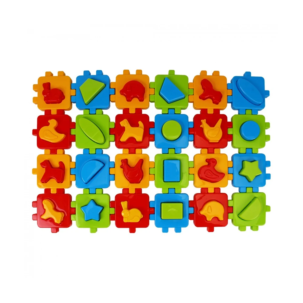 Cub educativ multifuncțional cu figuri geometrice și animale, special conceput pentru joacă educativă și dezvoltarea timpurie a copiilor.