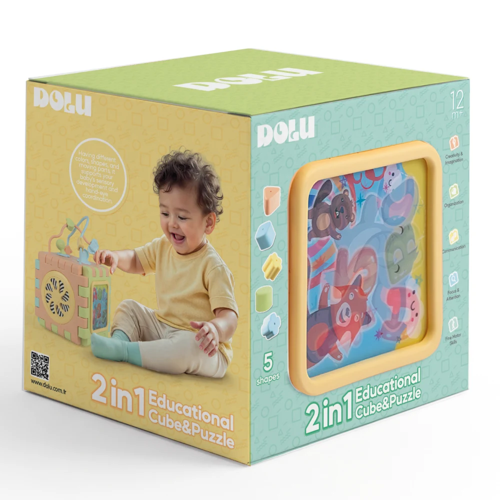 Cub educativ pentru copii, conceput pentru a stimula dezvoltarea timpurie prin joacă interactivă. Produsul integrează mai multe activități pe fiecare latură, oferind copilului oportunități variate de explorare și învățare.