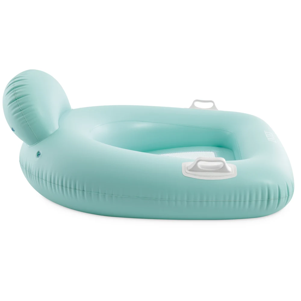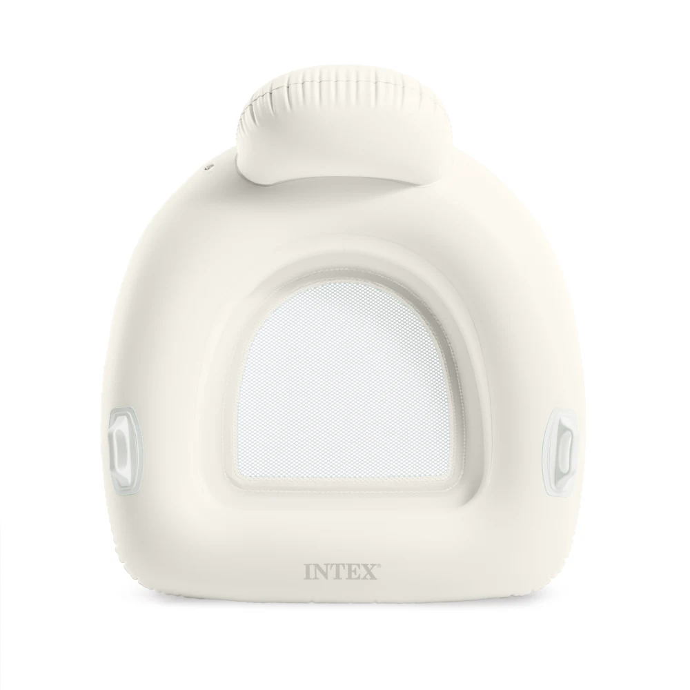 Fotoliu gonflabil pentru apă, conceput pentru relaxare confortabilă la piscină sau în zone cu apă liniștită. Forma tip scaun, cu spătar și mânere laterale, oferă susținere bună și stabilitate în timpul utilizării.