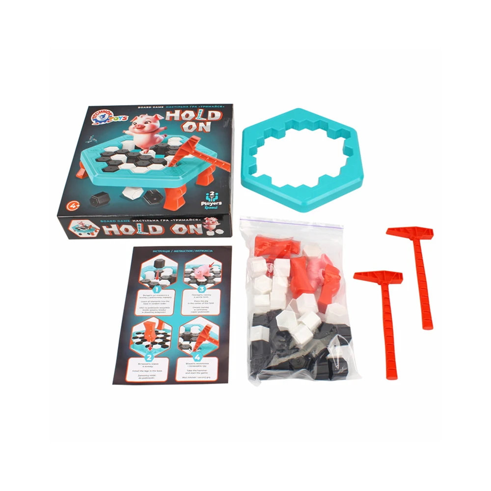 Jocul de masă Hold On Baby este un joc interactiv de îndemânare și strategie, conceput pentru copii și întreaga familie. Scopul jocului este de a elimina pe rând piesele de pe suprafața de joc fără a face personajul să cadă.