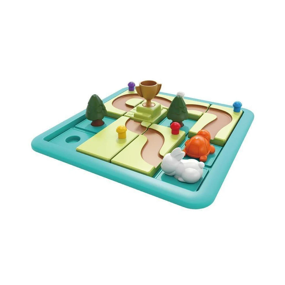 Joc de masă educativ pentru copii, bazat pe logică și strategie, inspirat din povestea clasică „Iepurele și broasca țestoasă”. Copiii trebuie să planifice traseele și să găsească soluțiile corecte pentru a ajunge la final.