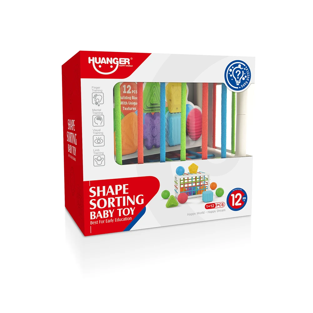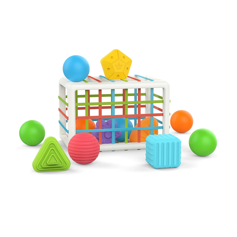 Acest joc educativ de sortare este format dintr-un cub senzorial și multiple forme geometrice colorate, special concepute pentru mâinile mici ale copiilor. Copilul este încurajat să potrivească formele în spațiile corespunzătoare, să le scoată și să le manipuleze liber, stimulând astfel curiozitatea și învățarea timpurie.