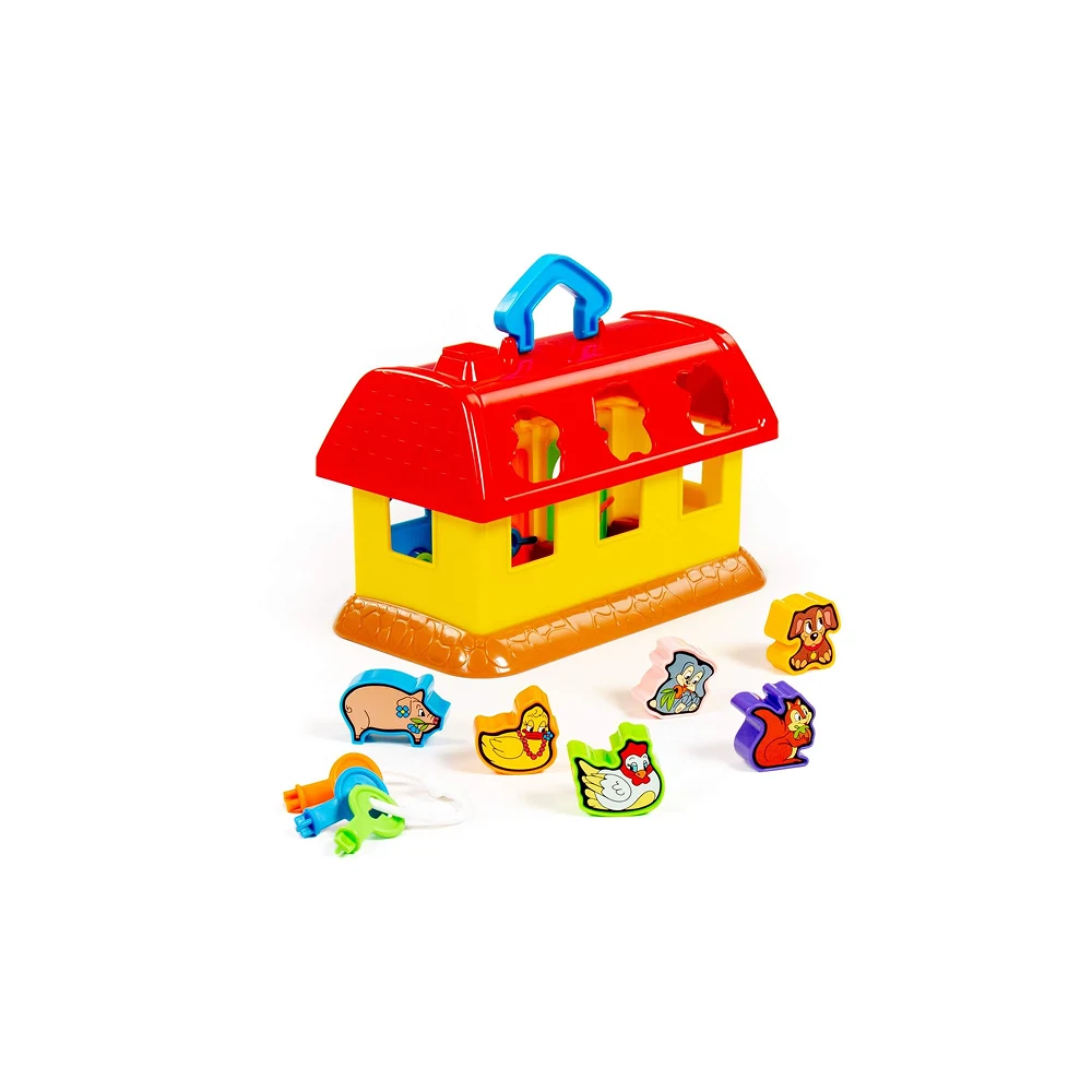 Căsuța educativă cu sorter și animale este o jucărie interactivă, concepută special pentru copiii mici. Aceasta include figurine cu animale ce trebuie potrivite în orificiile corespunzătoare, stimulând învățarea prin joacă. Căsuța este prevăzută cu ușițe și elemente mobile, oferind copilului multiple modalități de explorare și joacă.