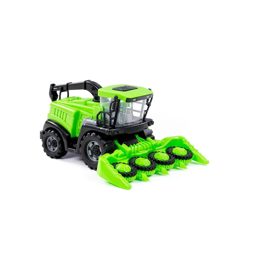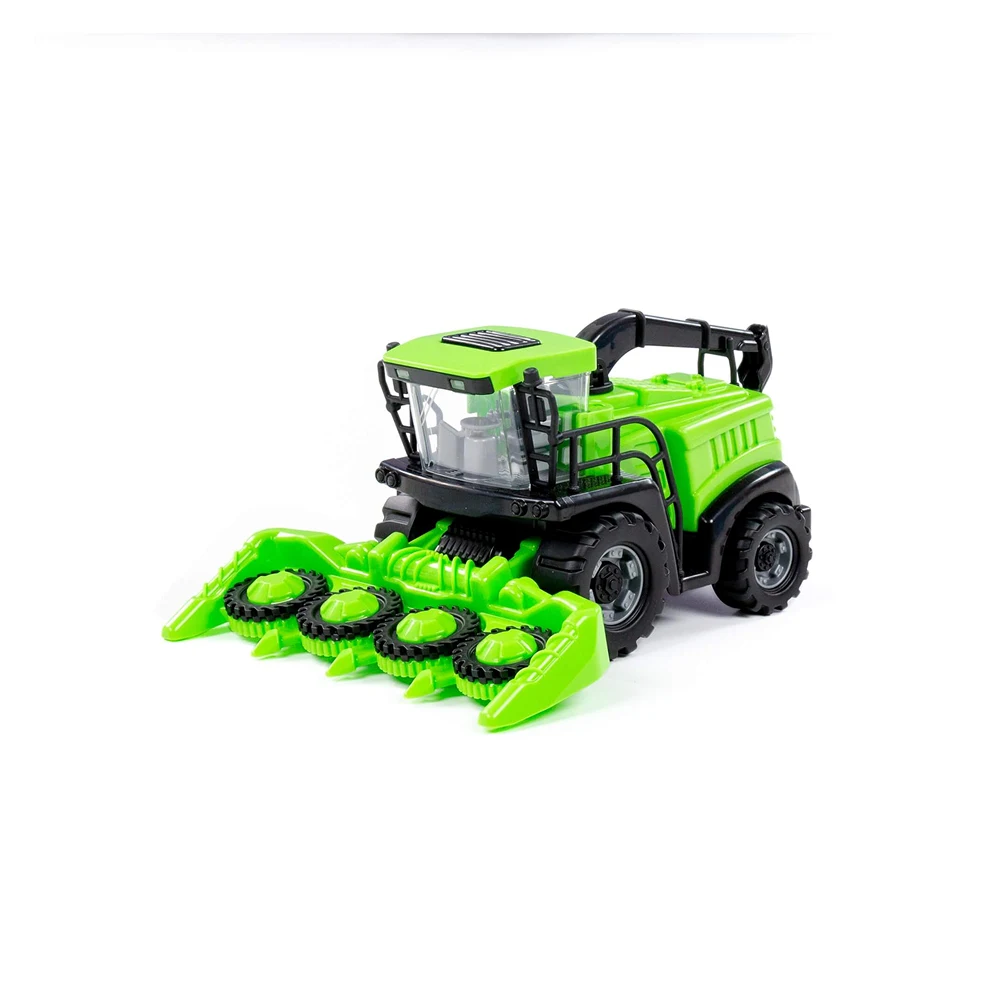 Combină de jucărie cu mecanism cu inerție, ideală pentru jocuri de rol inspirate din activitățile agricole, realizată din plastic rezistent și sigur pentru copii.