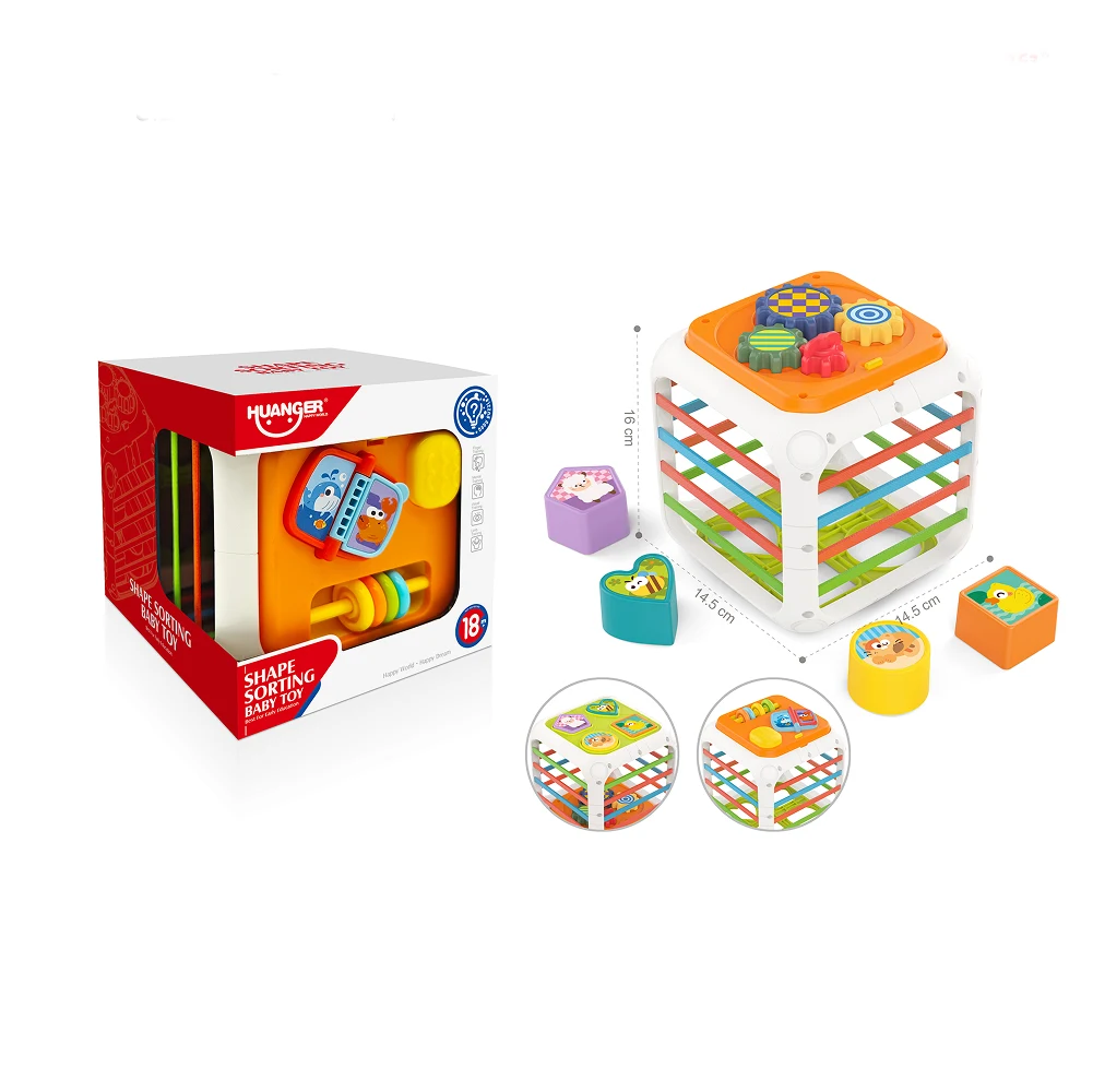 Copilul poate sorta formele colorate, le poate potrivi în spațiile dedicate și le poate urmări cum se deplasează prin interiorul cubului, stimulând curiozitatea și gândirea logică. Designul deschis permite vizualizarea pieselor în interior, încurajând explorarea și joaca activă. Jucăria este realizată din materiale sigure, cu margini rotunjite, potrivită pentru utilizare zilnică.